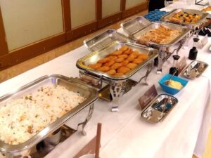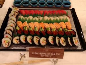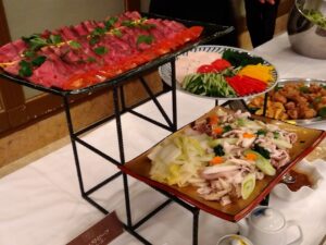 お刺身やお寿司、ローストビーフなど、普段なかなか味わえない贅沢なメニューにみんな大満足!「美味しい!」という声があちこちから聞こえ、会話も弾みました。😋